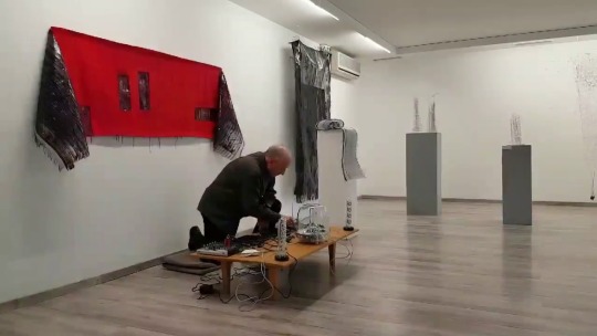 Mátrai Péter - a ,,három gráciához" - zenei performanszával zártuk Fóris Katalin, T.Doromby Mária és Vigh Krisztina textilművészek kiállítását.
