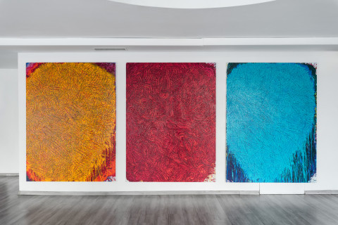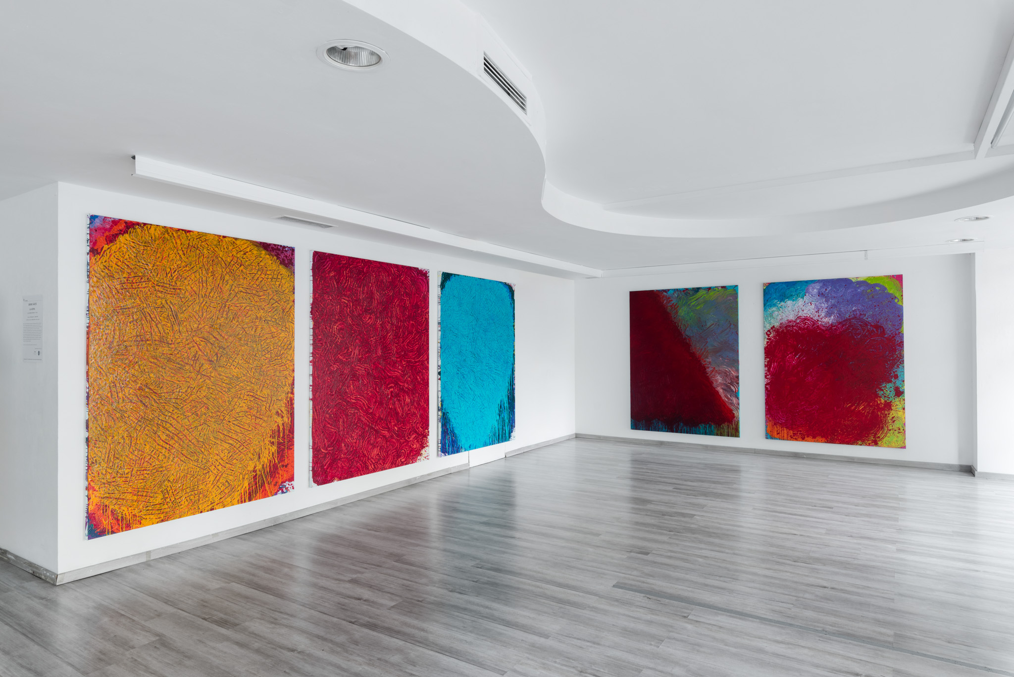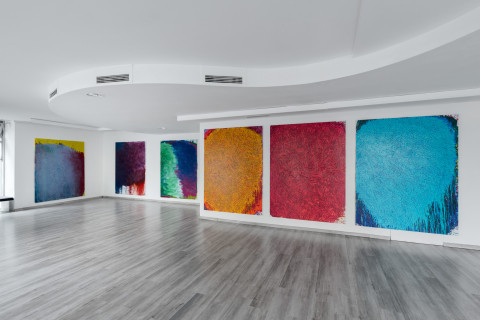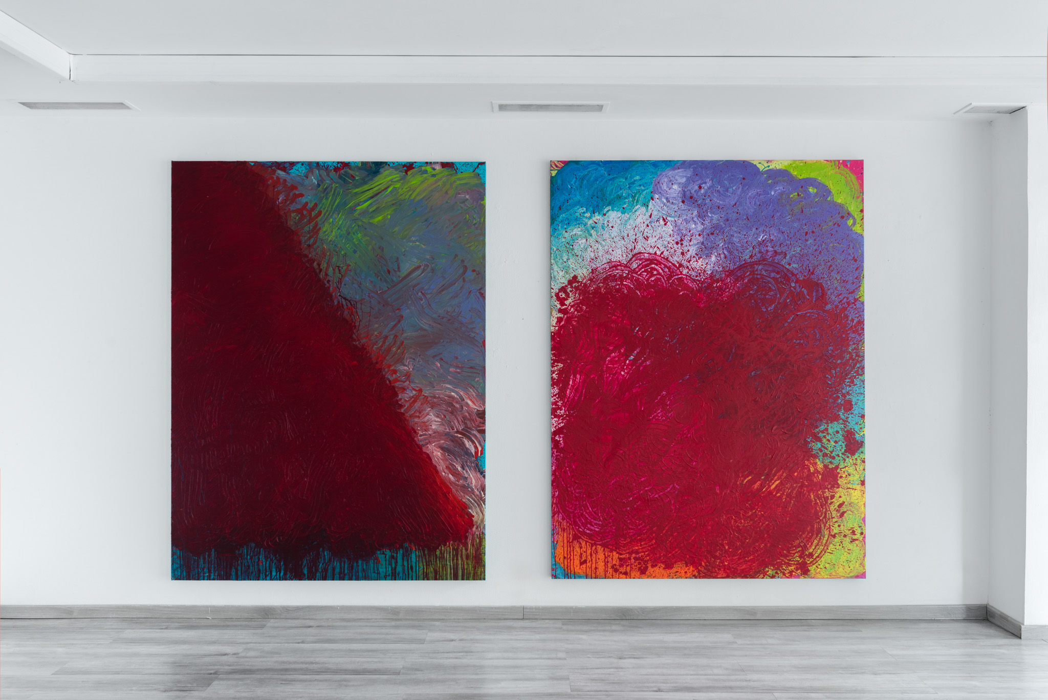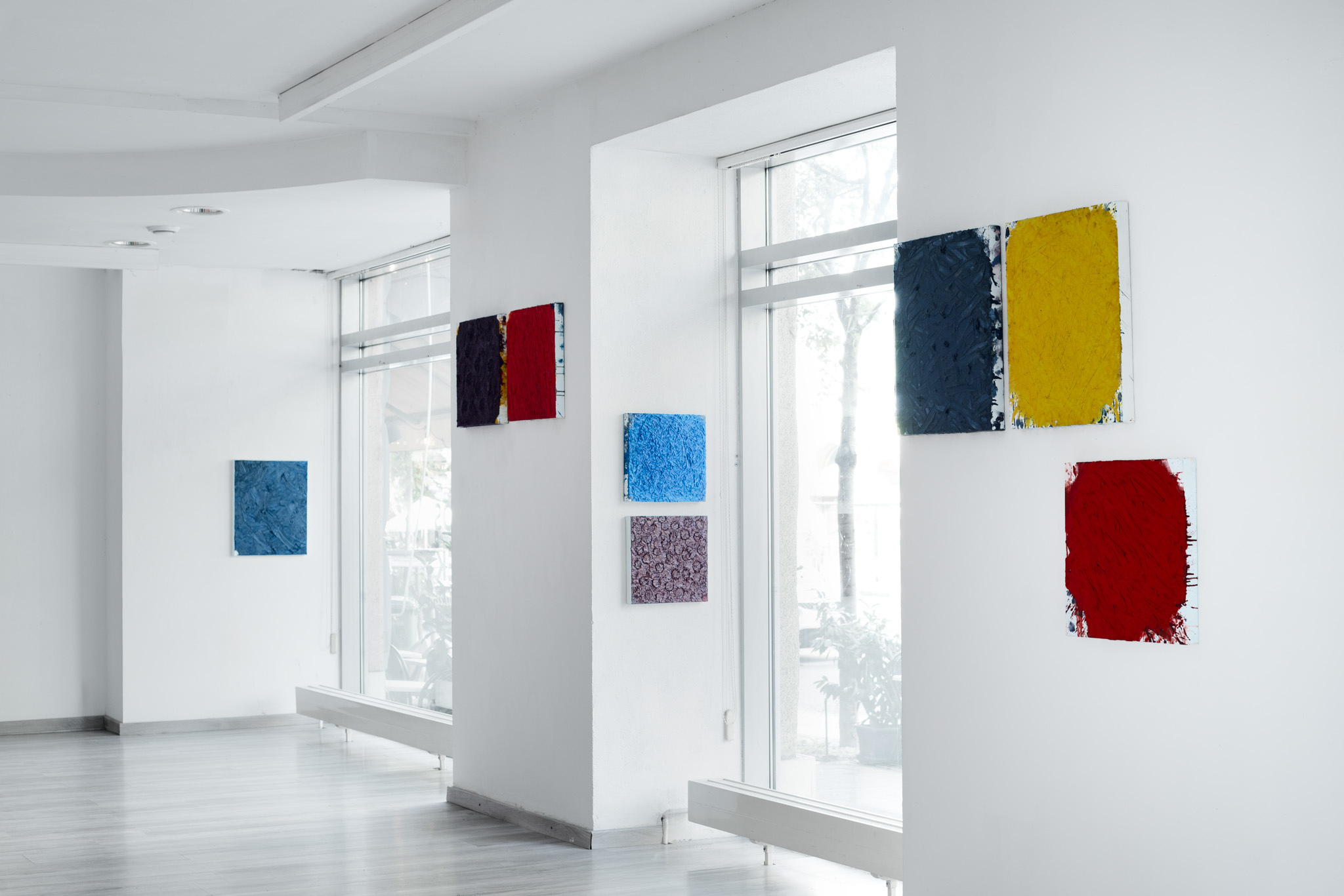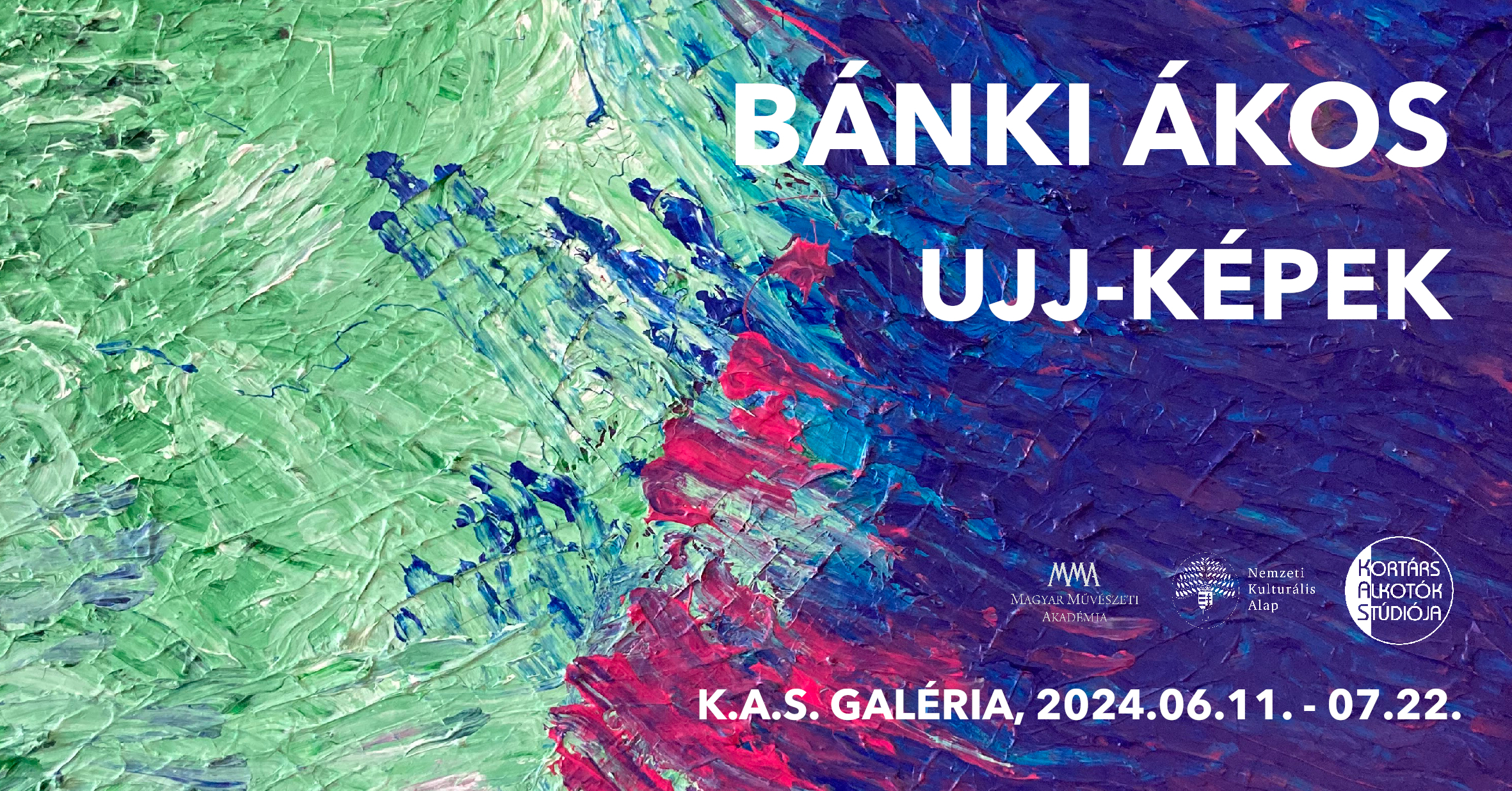 Bánki Ákos (1982) festőművész Ujj-képek című kiállításának festményei a Dionüszosz álma című szériáját folytatják, melyekben a szín egynemű, szinte monokróm térré lényegül. Ezekhez a képekhez speciálisan elkészült festék anyaga sok gyantát tartalmaz, mely az akrilt testessé teszi, élettel telíti meg, ami nem simulva a vászonhoz mélységeket és magasságokat alkot rajta. A vászon felületén így a fény állandó játékot folytat színnel, formával, a képeken az anyag állandó transzformációban vibrál. A festő a kép materiális dimenziójával kísérletezik. A látogató ezeknek az egynemű tereknek a rétegeit és a textúráját felfedezve merülhet el a festmények világában. 2024 nyarán Bánki Ákos negyedik egyéni kiállítása lesz látható a K.A.S. Galériában. Újra a számára otthonos nagy méretekkel jelentkezik, de néhány korábbi kisméretű monokróm munkával is találkozhat a látogató.